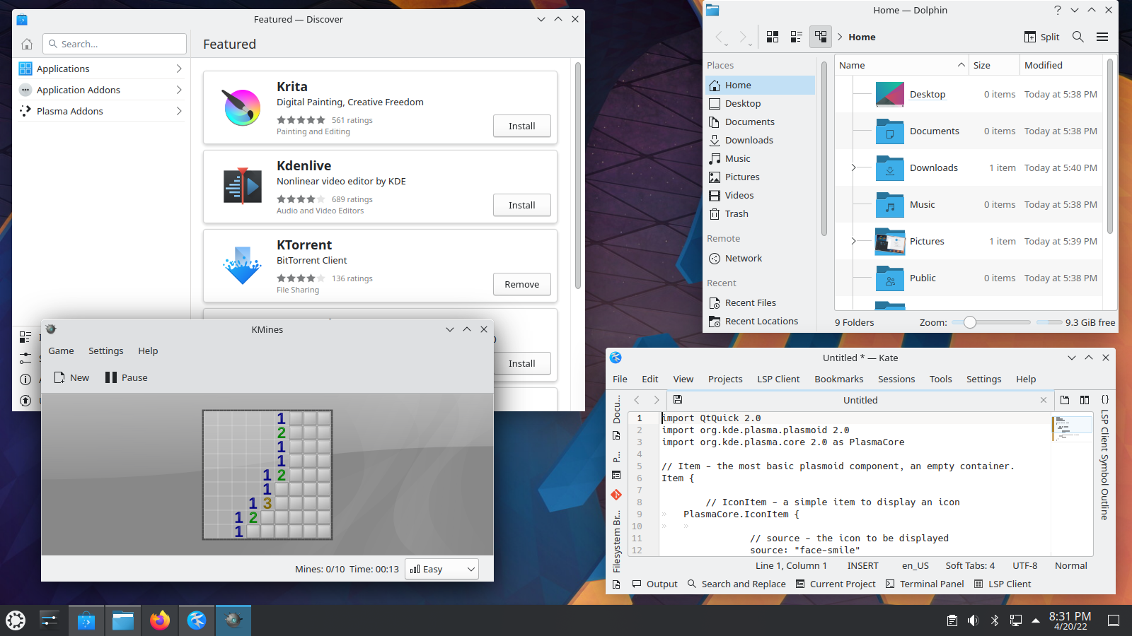 A motorháztető alatt számos alapcsomagot frissítettek, beleértve az új 5.15-ös alapú kernelt, a KDE Frameworks 5.92-t, a Plasma 5.24 LTS-t és a KDE Gear (korábban Applications) 21.12.3-at.